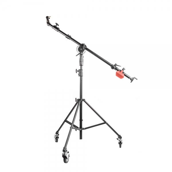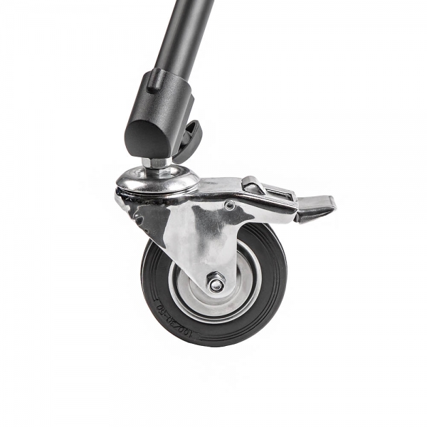 Червячный механизм управляется поворотным колесом и позволит повернуть установленное оборудование на угол до 315° (по вертикали). Для большей мобильности в комплекте крана-стойки предусмотрены ролики диаметром 100 мм, оснащённые тормозом. Для противовеса, в комплектации крана-стойки предусмотрен груз-противовес.